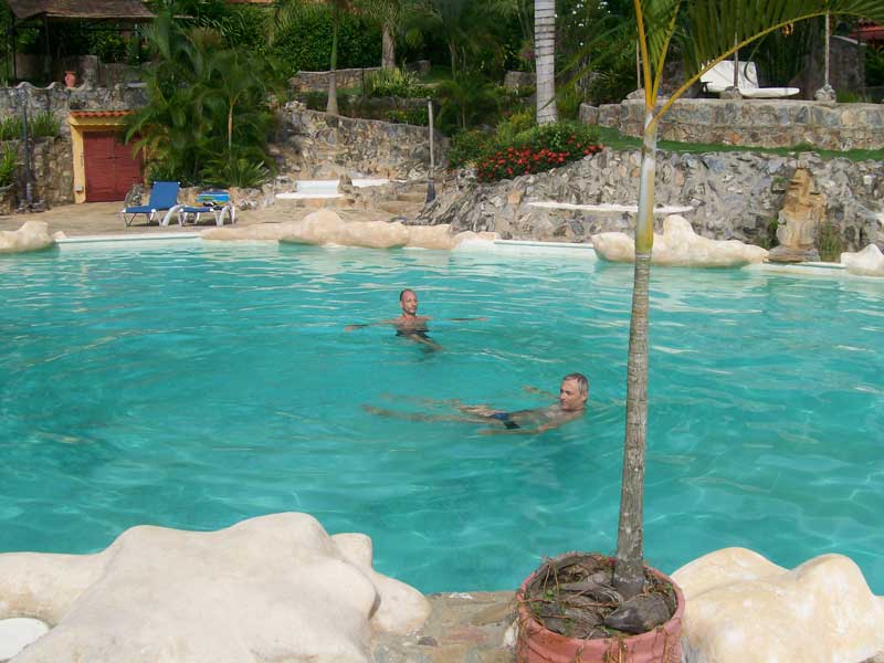 Giunti a Las Terrenas veniamo portati nel residence I.C., luogo immerso nel verde lussureggiante con piscina e tutti i confort. Ci sistemiamo nel residence e tutto sembra procedere per il meglio. Giunta la sera andiamo a dormire… a mezzanotte in punto un gallo comincia a chicchiriare e continua così per tutta la notte, fino il mattino. In pratica non riusciamo a dormire e ciò accade anche per le altre due notti successive. Al terzo giorno, oramai stressati, decidiamo di andare via dal residence e ci spostiamo all’hotel Madrugada di Las Terrenas.